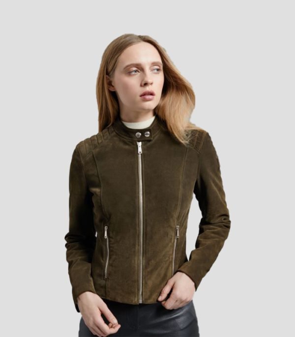 Women Pure Light Green Leather Jacket